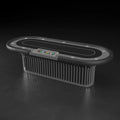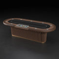 Curved vertical slats conceal yet reveal a textured pattern around the rounded rectangular base of the Temple poker table. With subtle metallic accents and the unexpected use of pattern and print, this handcrafted design is both timeless and modern, making it a one-of-a-kind addition to any interior space.