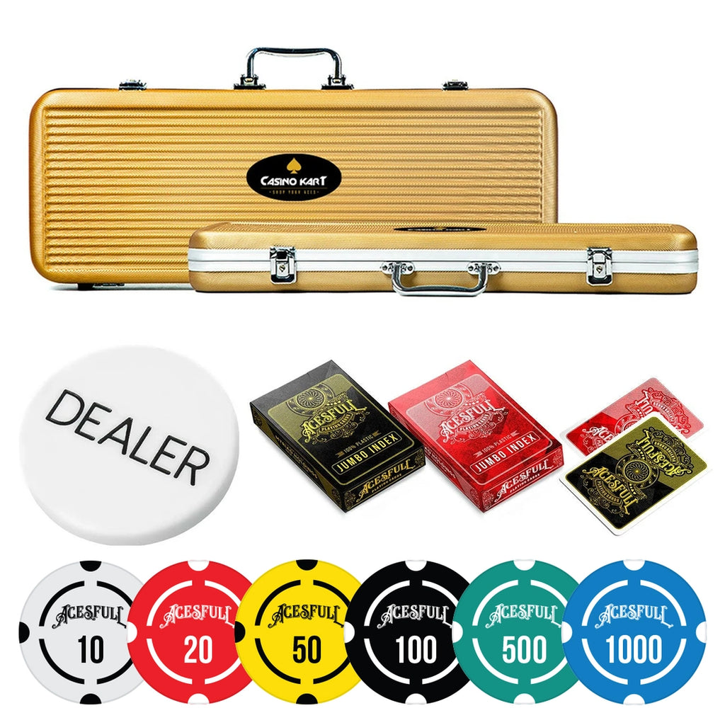 • Poker Chips: Acesfull Poker Chip sets of 300 pieces and 500 pieces, respectively